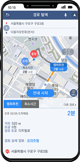 또한 자체 보유하고 있는 차량 경로 탐색, 도보 경로 탐색 기술력과 도보네트워크 데이터를 중심으로 교통약자 경로 탐색 서비스도